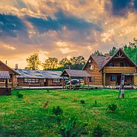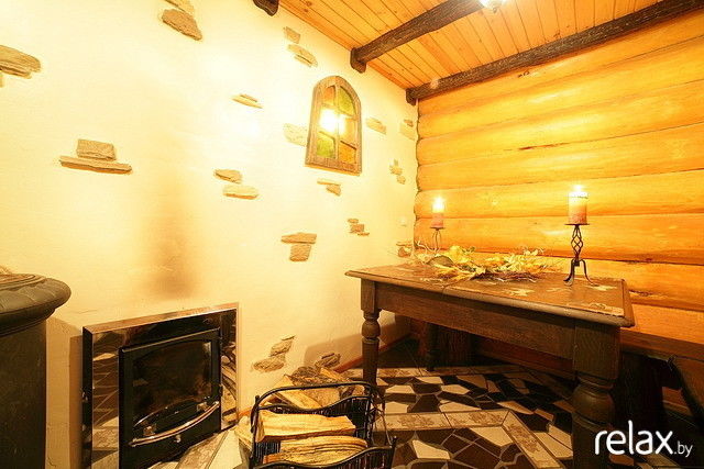 Рабочая плита и духовка. Очень большой вместительный холодильник с морозильником. В банкетном зале все очень уютно, есть музыкальный центр и телевизор. При хорошей погоде можно разместиться на улице в двух открытых беседках, а при плохой - в крытой беседке с очагом, что мы и сделали :) Было очень уютно там отмечать праздник. Танцпол на улице большой, территория огромная, даже и обойти то не успели за сутки :) Банька просто чудесная, растапливается за час и что очень важно, пребывание в ней неограниченно :) Гости могут сами топить сколько надо и наслаждаться банькой.