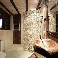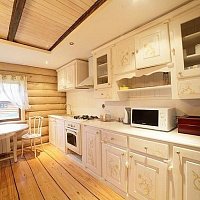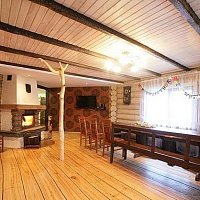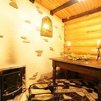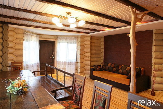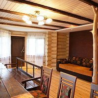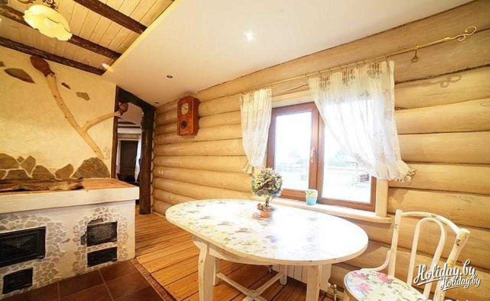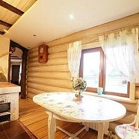Долго искали бревенчатый дом с банькой около леса и реки, чтобы до цивилизации было не очень далеко, и что бы не в населенном пункте. Этот дом точно такой, как мы хотели. Огромная территория, множество комнат, лес за забором, река в двух шагах, деревенька в 200 метрах. Дорога вполне приличная до дома (не знаю, как летом, но зимой таксисты не отказывались завести). При желании могут и еду организовать. Есть дрова - для баньки, для печки-лежанки, для камина и мангала. Все сделано очень добротно - массивные бревна сруба, дубовый стол на 30 персон :), хорошо подогнанный пол. Но есть несколько моментов - это бойлер, то есть теплая вода не бесконечна, и отопление дровами - нужно кому то просыпаться ночью и подбрасывать в котел. Но это мелочи, тем более, что летом, наверняка, таких проблем нет, да и хочется почувствовать деревенскую жизнь :)